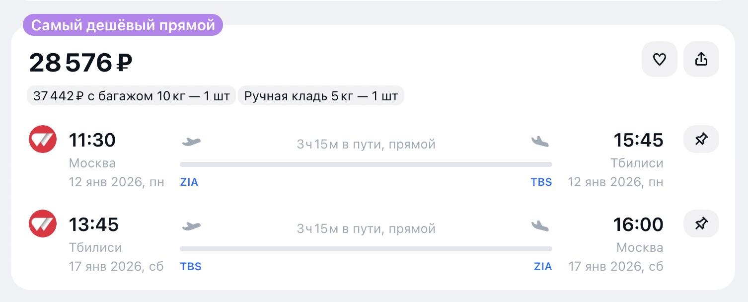 Перелёт до Тбилиси и обратно