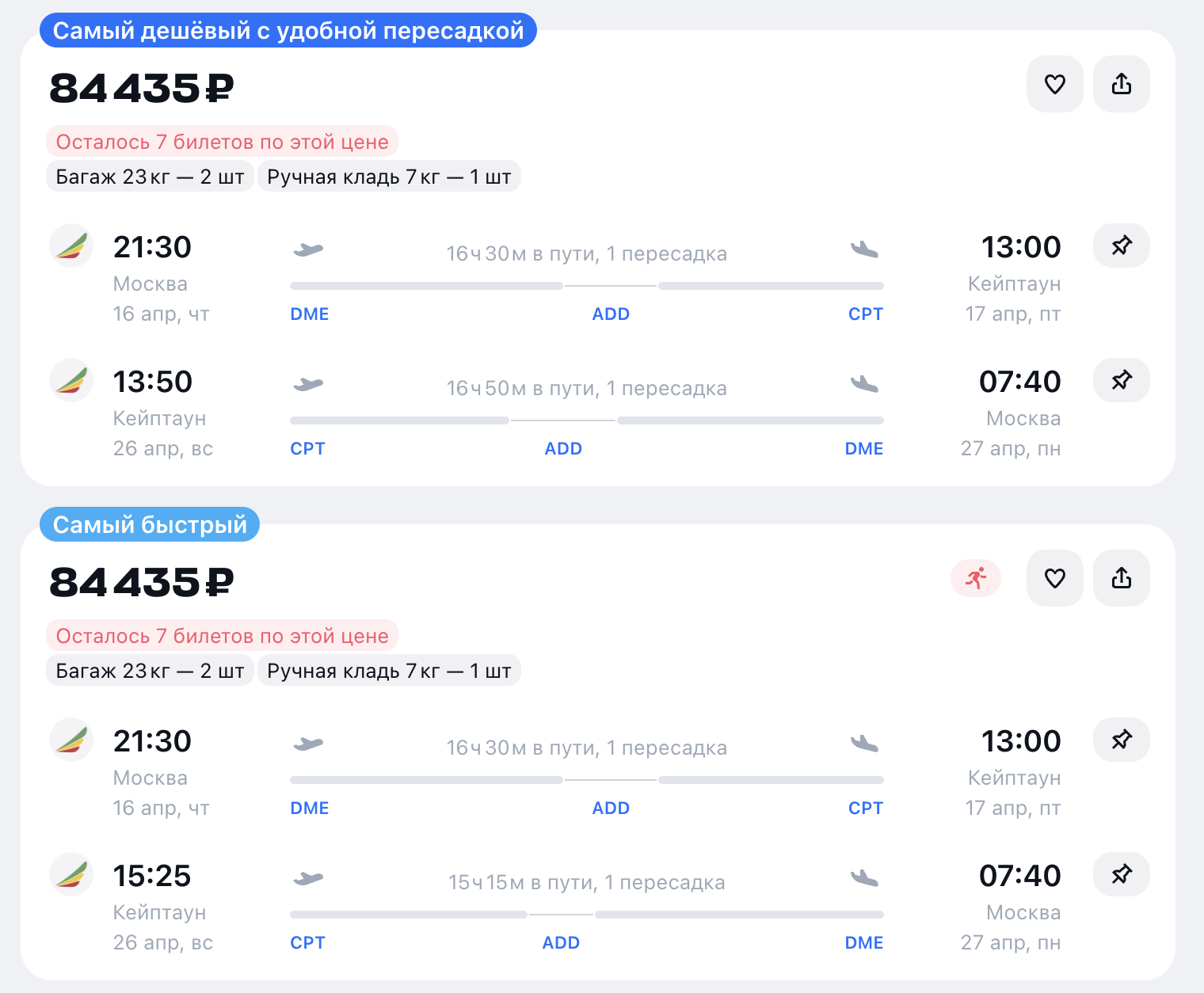 Перелёт до Кейптауна и обратно (помогаем подобрать варианты)